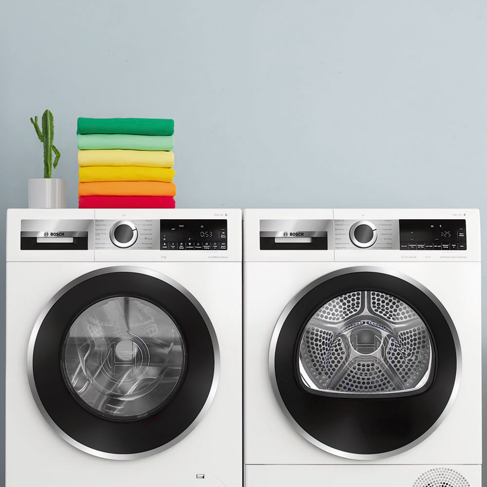 Waschmaschinen von Bosch sind besonders effizient. Sie sind so konstruiert, dass sie einen niedrigen Wasserverbrauch und einen niedrigen Stromverbrauch haben und doch die besten Waschergebnisse erzielen. Einige unserer Waschmaschinen erreichen die beste Energieeffizienzklasse A*. Bosch Waschmaschinen bieten außerdem verschiedene Funktionen, mit denen Sie oft mehrere Liter Wasser sparen können.