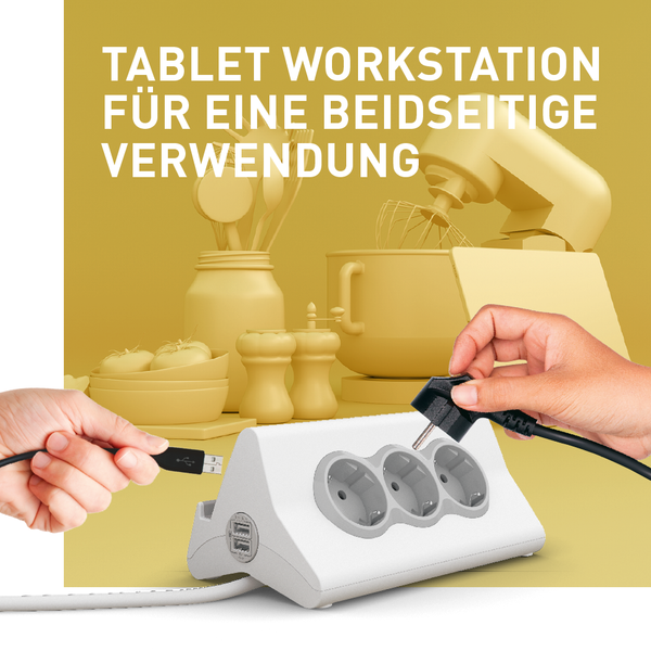 - Tablet Workstation mit USB und Steckdosen